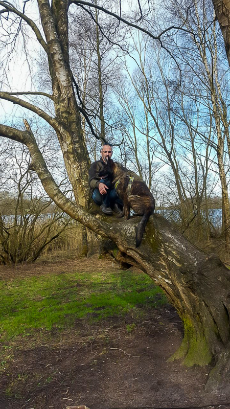 Mein Mann klettert auf den Baum und der Hund hinterher ?