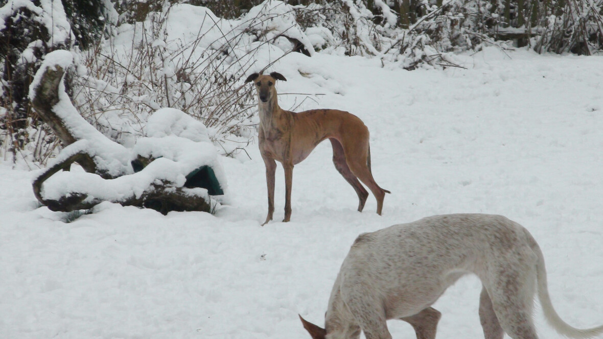 Die hübsche aber extrem scheue Galga Chula.....Kamerascheu ist sie auch