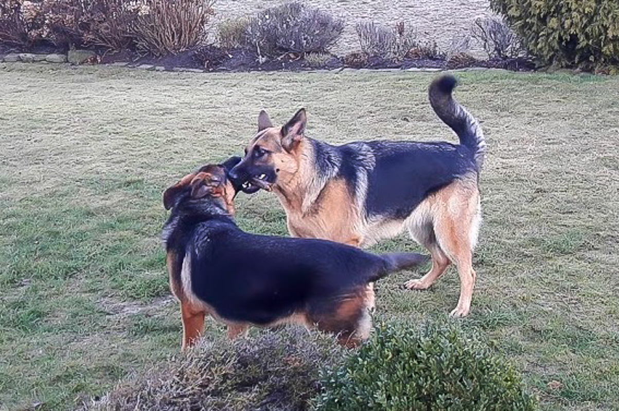 Das finde ich auch. Gibt nichts schöneres als wenn Schäfis zusammenspielen. Und ja die beiden sind ganz toll und es gibt auch nie Probleme. Zur Begrüßung geben sie sich auch immer "Küsschen"