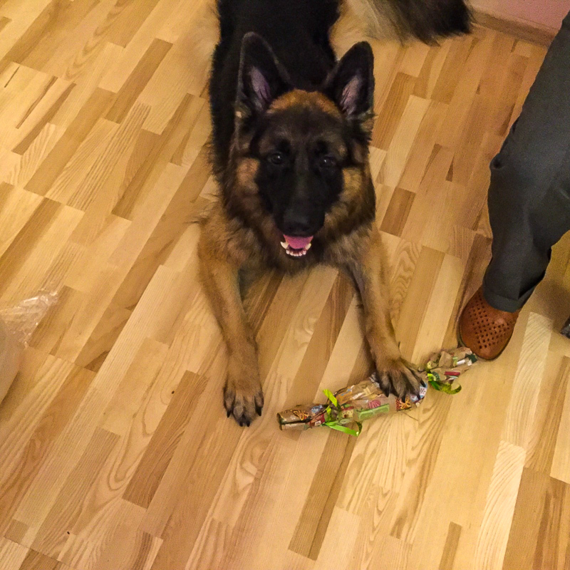 So ein Rindsbein (portioniert) freut besonders. Da andere Hunde im Raum waren, lege ich sicherheitshalber meine Pfote drauf, wenn ich für das Frauli Fotomodell mache