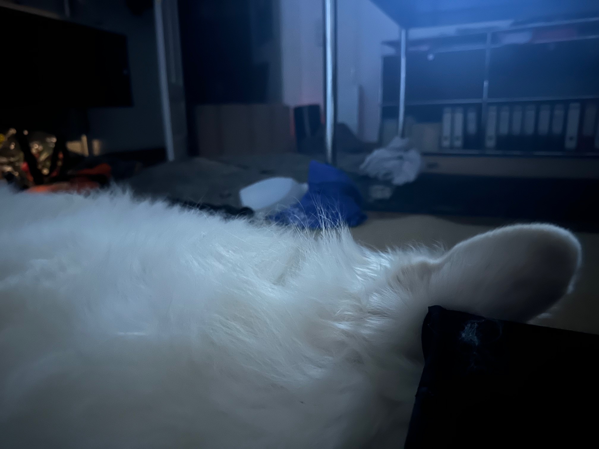hier ist er zu meinem feldbett hingerobbt um mir nahe zu sein. aufstehen oder stehen konnte er zu dem zeitpunkt schon gar nicht mehr.