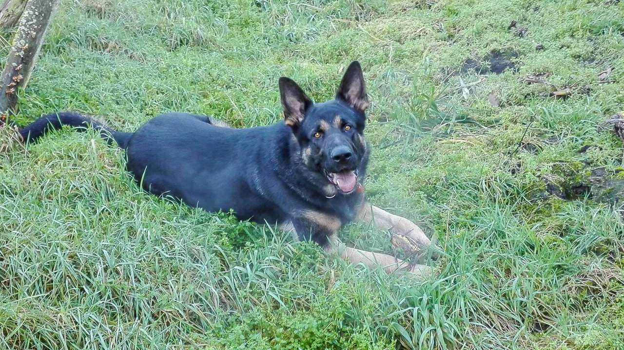 Bei unserem heutigen Vormittagsspaziergang gemacht; ich dachte, in den Augen würde der Blitz sein, nun sehen sie regelrecht leuchtend aus.