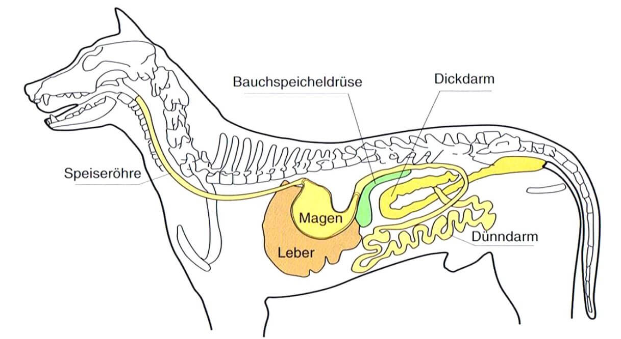 Im Dickdarm, der nächsten Station, wird dem Nahrungsbrei das restliche Wasser und Elektrolyte entzogen. Die Mikrobiotika, also die im Darm lebenden Bakterienstämme, sind für das Umwandeln und Produzieren lebenswichtiger Vitamine zuständig. Deshalb ist es wichtig, dass die Mikrobiotika über die Ernährung des Hundes im Gleichgewicht bleibt und regelmäßig unterstützt wird. Der Darm ist das Königsorgan des Körpers. Ist er nicht gesund, dann ist der gesamte Organismus beeinträchtigt. Das gilt nicht nur für unsere Vierbeiner, sondern auch für uns Menschen!