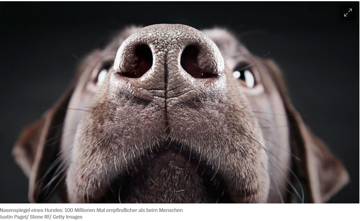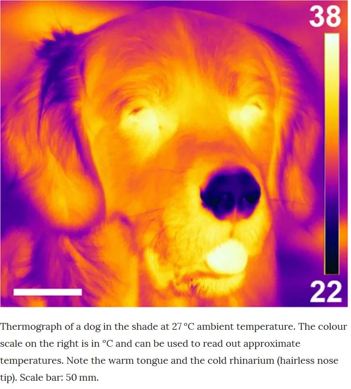 Die meisten Säugetiere haben rund um die Nasenlöcher nackte, glatte Haut. Dieser Bereich wird als Nasenspiegel (Rhinarium) bezeichnet. Der Nasenspiegel von Hunden hingegen ist feucht, kälter als die Umgebungstemperatur und mit vielen Nerven ausgestattet. Schon diese Merkmale deuten auf die Fähigkeit hin, nicht nur Geruch, sondern auch Wärme erkennen zu können.
