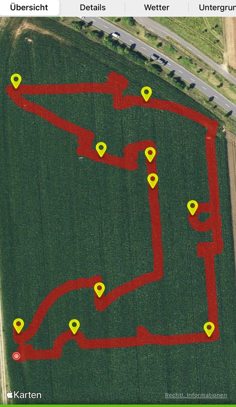 Das war die Fährte, richtig gut kann man die kleinen Winkel nicht erkennen.