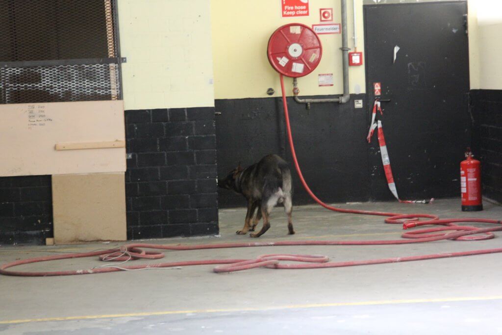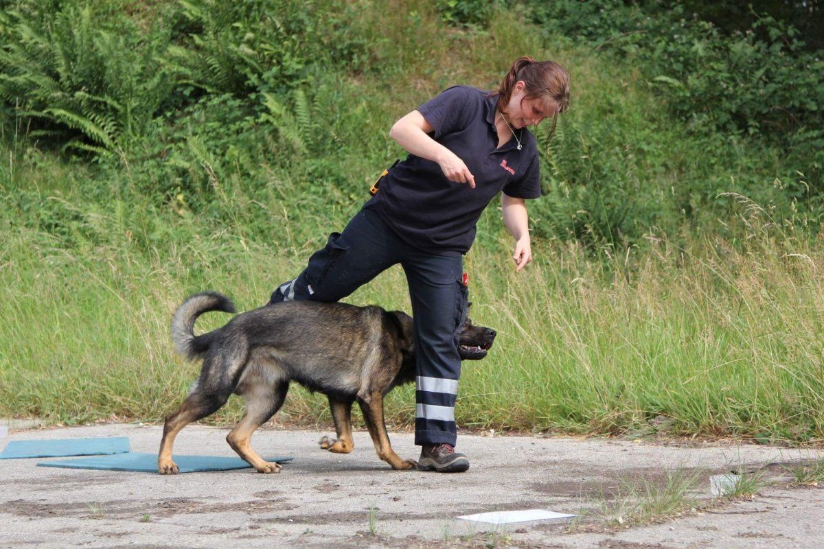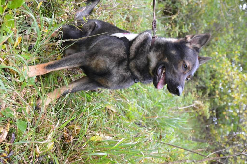 In der 2. Übung habe ich Hermann die Grundlinie eines Waldstücks absuchen lassen. Die Grundlinie war in diesem Fall ein Waldweg, der das Gebiet begrenzte. Für uns ist das Absuchen dieser GL durchaus einsatzrelevant, da Vermisste auch in den Randbereichen zu finden sind. Bei dieser Übung muss sich Hermann von mir den Weg hochschicken lassen,ohne dabei in den Wald zu laufen, es sei denn,er hat Witterung.