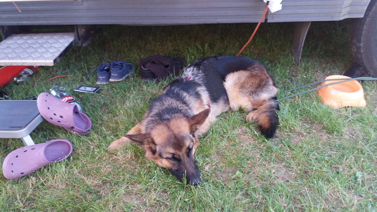 Meiste Zeit im schlafmodus. War warm. Im Zelt hat es super geklappt und geschwommen ist sie auch. Aber davon hab ich kein Foto, weil ich mit musste. Hihi