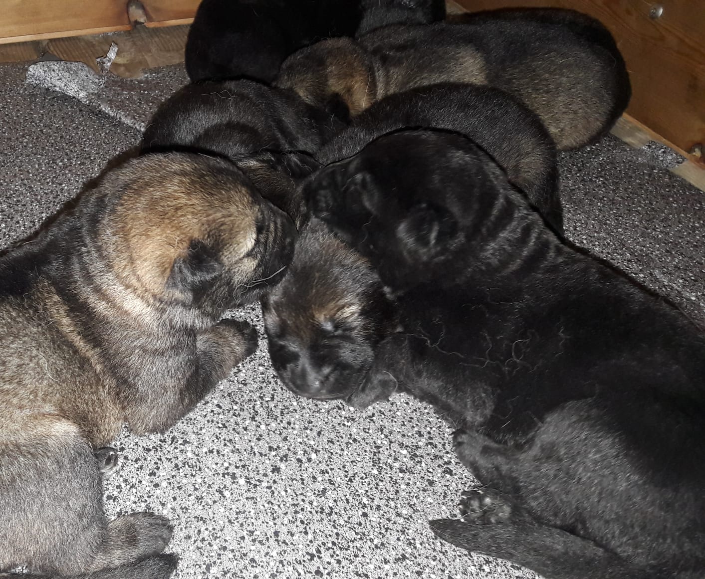 Das ist der erste Wurf der Hündin. Die sie selbst aufgezogen haben.