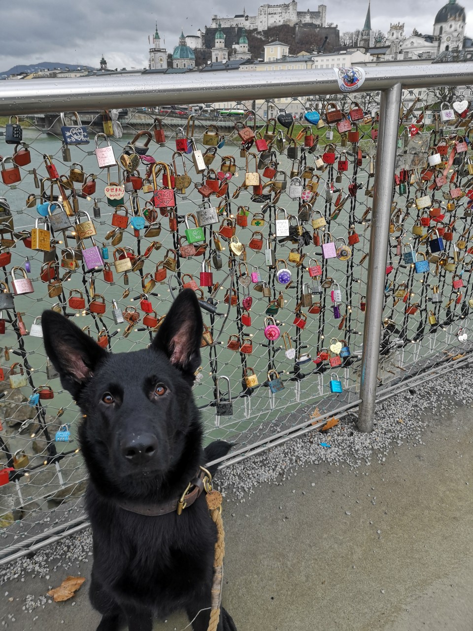 Die Stadt Salzburg haben wir per Sbahn besucht und auch dort war er super brav. Es waren viele Menschen am Samstag unterwegs, aber er hat das wirklich ganz toll gemacht! Ich habe ihn aber sicherheitshalber mit Maulkorb geführt. Viele Leute haben uns angesprochen weshalb, in Salzburg sind sie weitaus offener zu Hunden als in Wien. Außerdem wurde Onyx so oft gelobt wie hübsch er nicht ist.