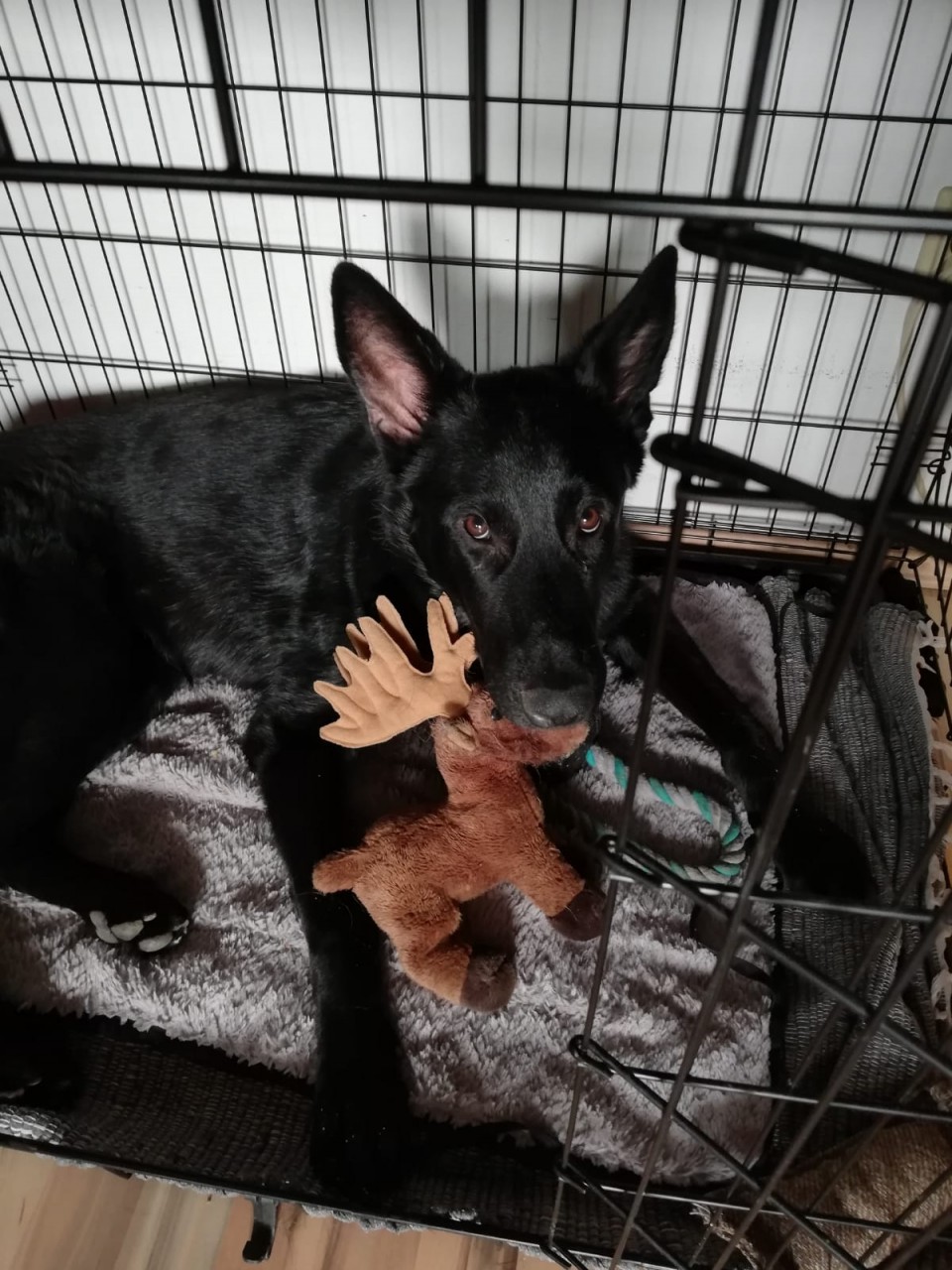 Onyx hat einen Tisch angekaut, einen Lichtschalter aus der Wand gerissen und einen Hundekorb zerstört.