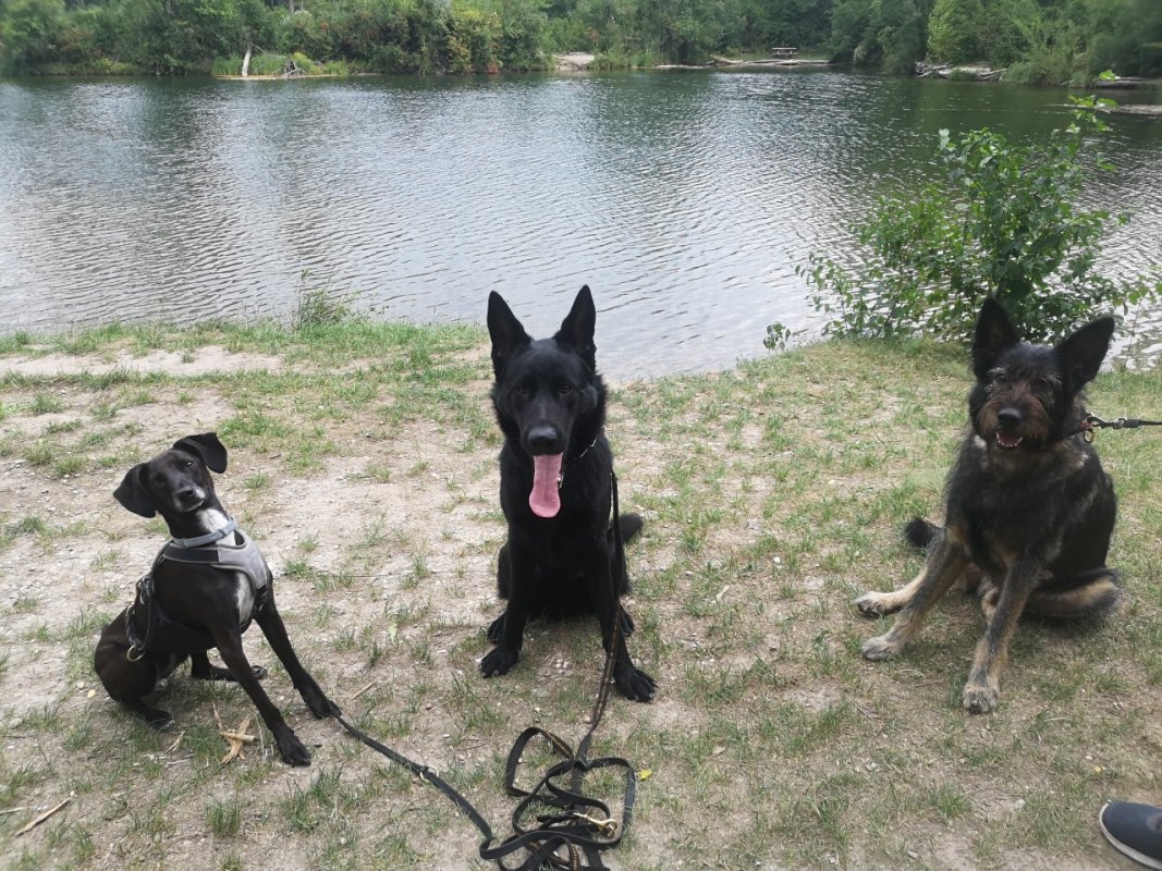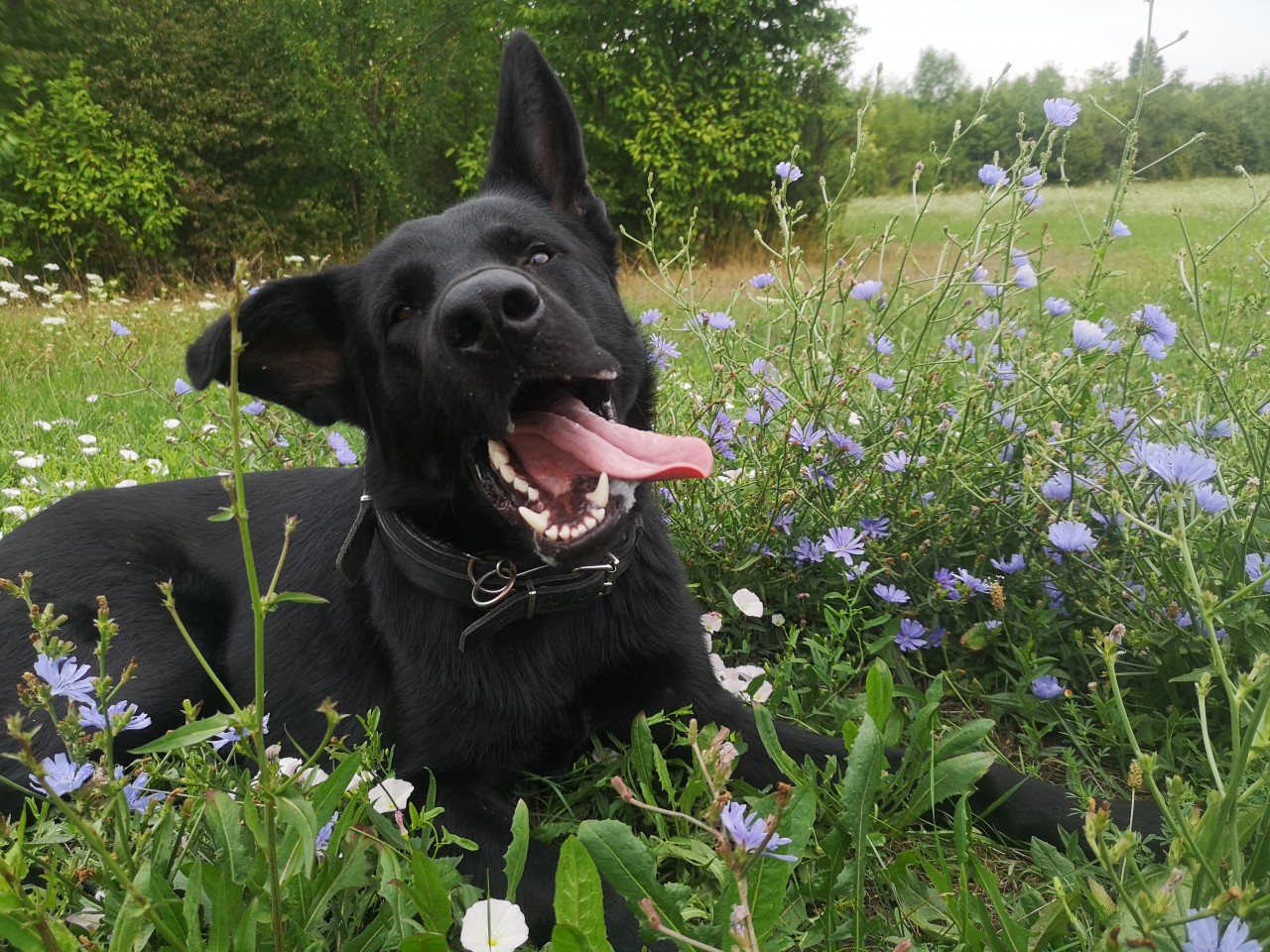 An dem Tag, lernte er: mit Hunden laufen und spielen gibt es nur, wenn er sich die Freigabe bei mir abholt, also mich anschaut. Leider verabsäumte ich das ein wenig, die Monate davor. Da ich ja keinen engen Hundefreund in meiner Gegend für Onyx habe und schnell mal Schnuppern und dann weitergehen klappt ja schon zu 50% mit fremden Hunden. Die anderen 50% muss ich ihn nochmals ermahnen und ggf. mit der Leine kurz rucken, damit er weitergeht oder eben nicht zum Spielen ansetzt.