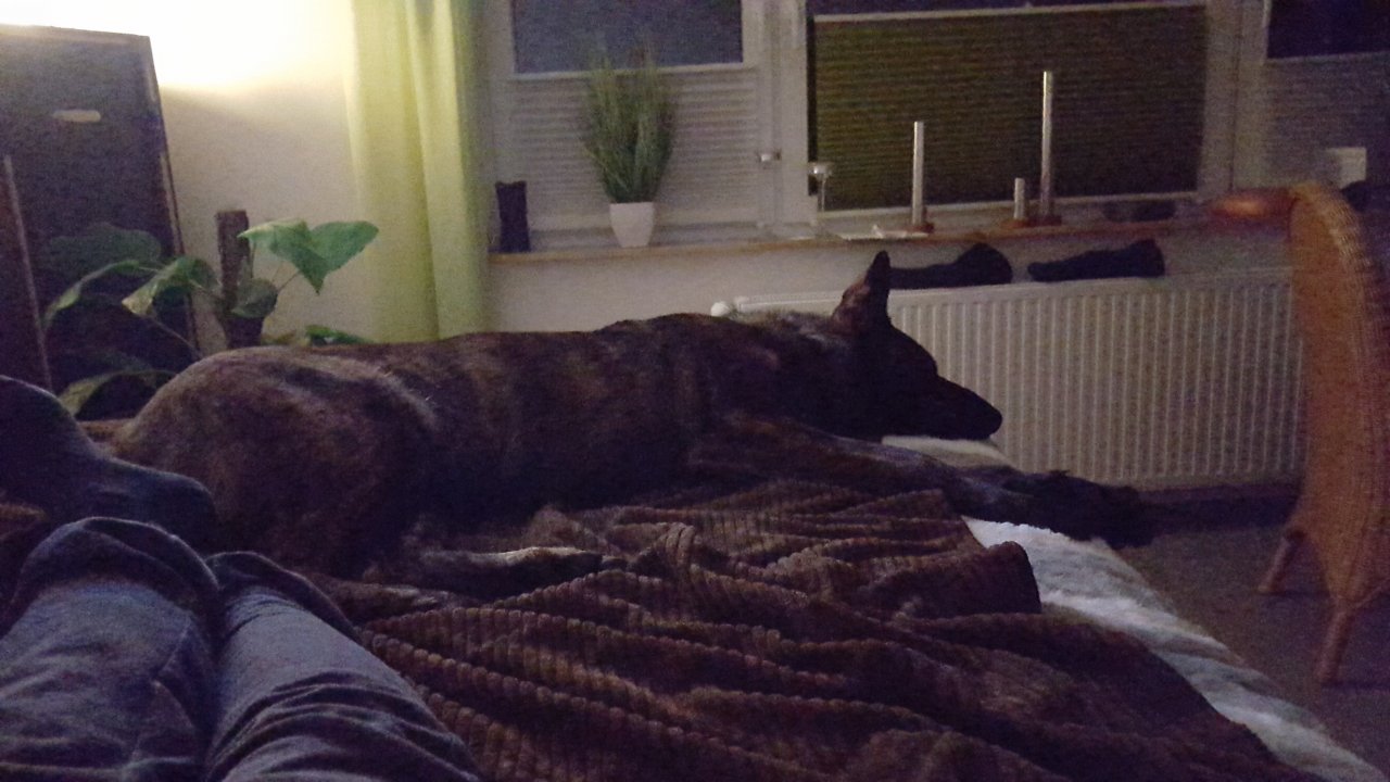 Montag ist mein Mann mal wieder zum arbeiten in die Sonne gefahren und Argos hat gestern Abend seine Decke in meinem Bett entdeckt. Das war für ihn wohl das Zeichen dafür das er bei mir schlafen darf.