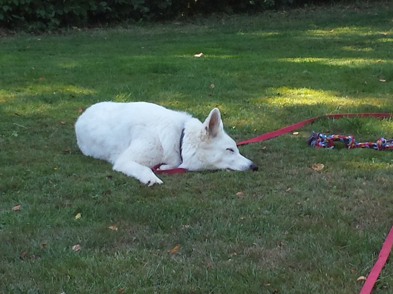 ich heiße Elly und bin eine weiße Schäferhündin und ca. 6 Jahre alt. Mein Herrchen hat mich vor ca. 4 Monaten aus dem Tierheim bei sich aufgenommen und was soll ich sagen, Naturgemäß habe ich lauter Unsinn im Sinn, besonders mag ich alle Hunde ob groß oder klein und will sofort wild bellend zu ihnen. Allerdings wirke ich wohl einschüchternd sagt Herrchen, was ich gar nicht verstehen kann.