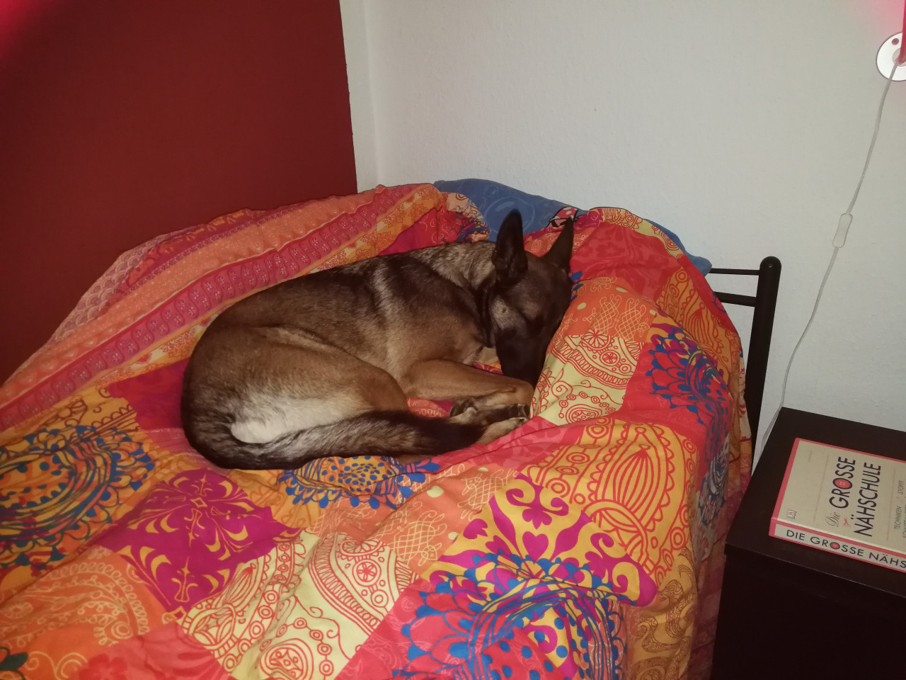 Dabei ist es nicht so, dass sie mich den ganzen Tag verfolgt, ne sie kann durchaus auch liegen bleiben, wenn sie merkt ich geh mir nur in einem anderen Zimmer was holen.