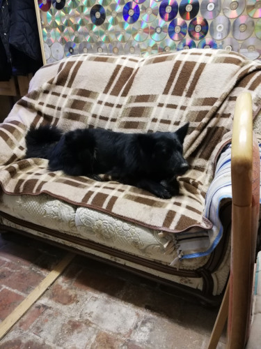 Im Hobbyraum wurde es die Sitzbank, das Hundebett war wohl zu einfach geworden. Also wurde eine Couch rangelenkt. Um noch eine Erhöhung zu schaffen, wurde die Plastiktruhe aus dem Schuppen geholt.