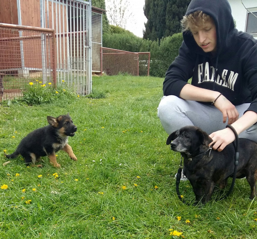 Sein Grund war oder ist einfach, dass er zu dem anderen Hund hin will, aber andere Hunde lassen sich halt auch nicht so anmachen, wie er das von klein auf macht. Das verschaffte ihm ja auch mit 3 Monaten den ersten Biss, im Freilauf, wohlgemerkt.