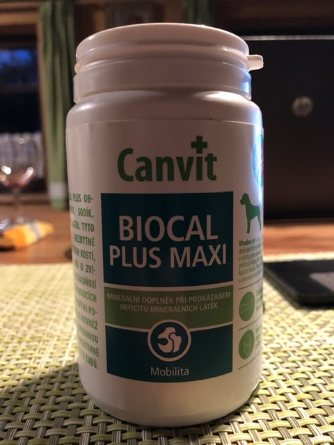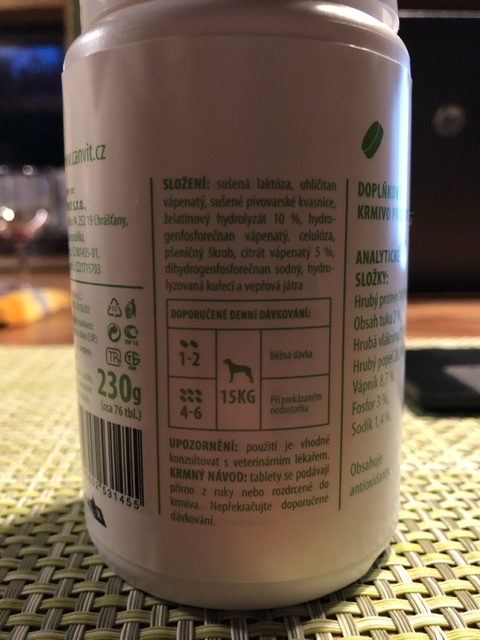 Das eine sind Tabletten mit Kollagen und einigen anderen Stoffen. Davon bekommt ein Hund je 15kg 1-2 Tabletten am Tag.