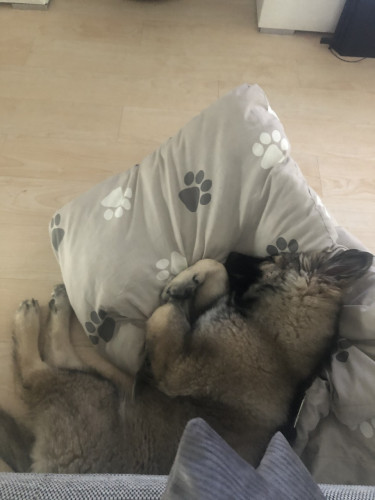 Dogmeat lässt Welpen und Junghunde teilweise die erste Zeit gar nicht mehr aufstehen. Er packt sie direkt wieder auf den Rücken wenn sie aufstehen wollen. Mehr aber auch nicht. Recht schnell ist dann Ende das sie ihn nerven wollen