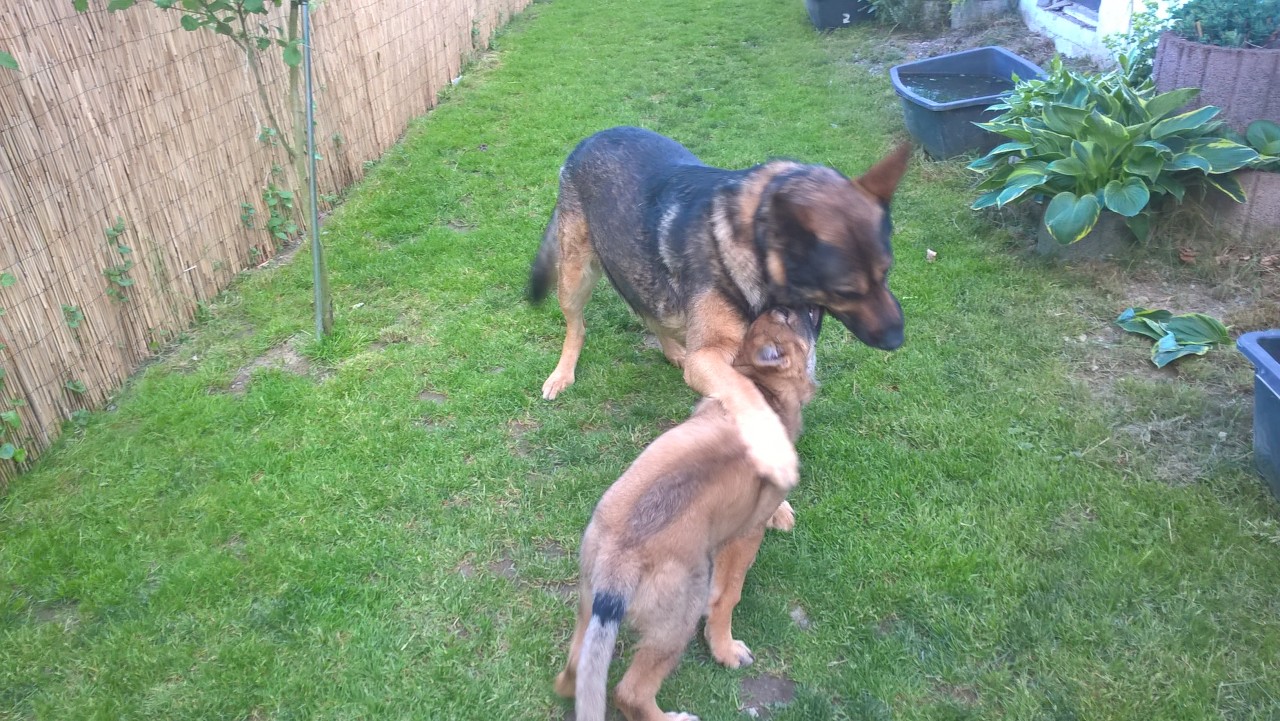 Hat Aiko vor 3 Jahren auch mit Dina gemacht, bzw er hat ihr seine Pfote auf die Schultern gelegt.