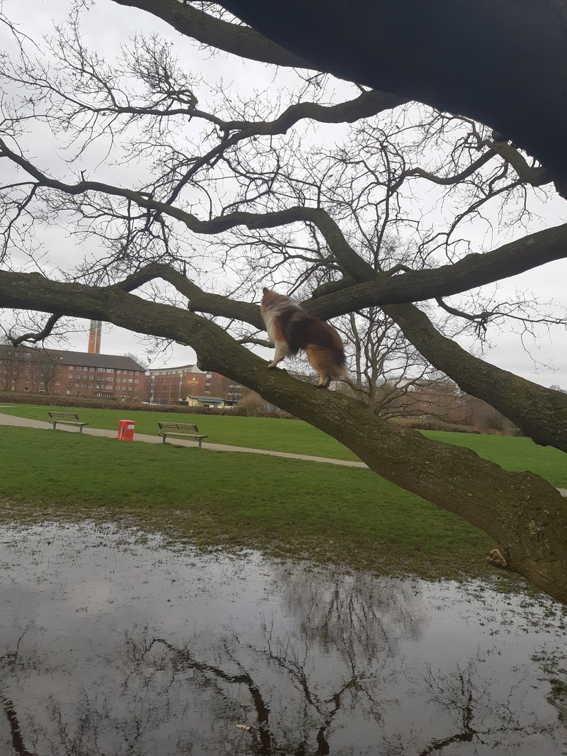 Er wollte nicht gerne schwimmen,also kletterte er auf diesen Ast,und lief dann ständig hin und her 😅🤦🏻♀️
