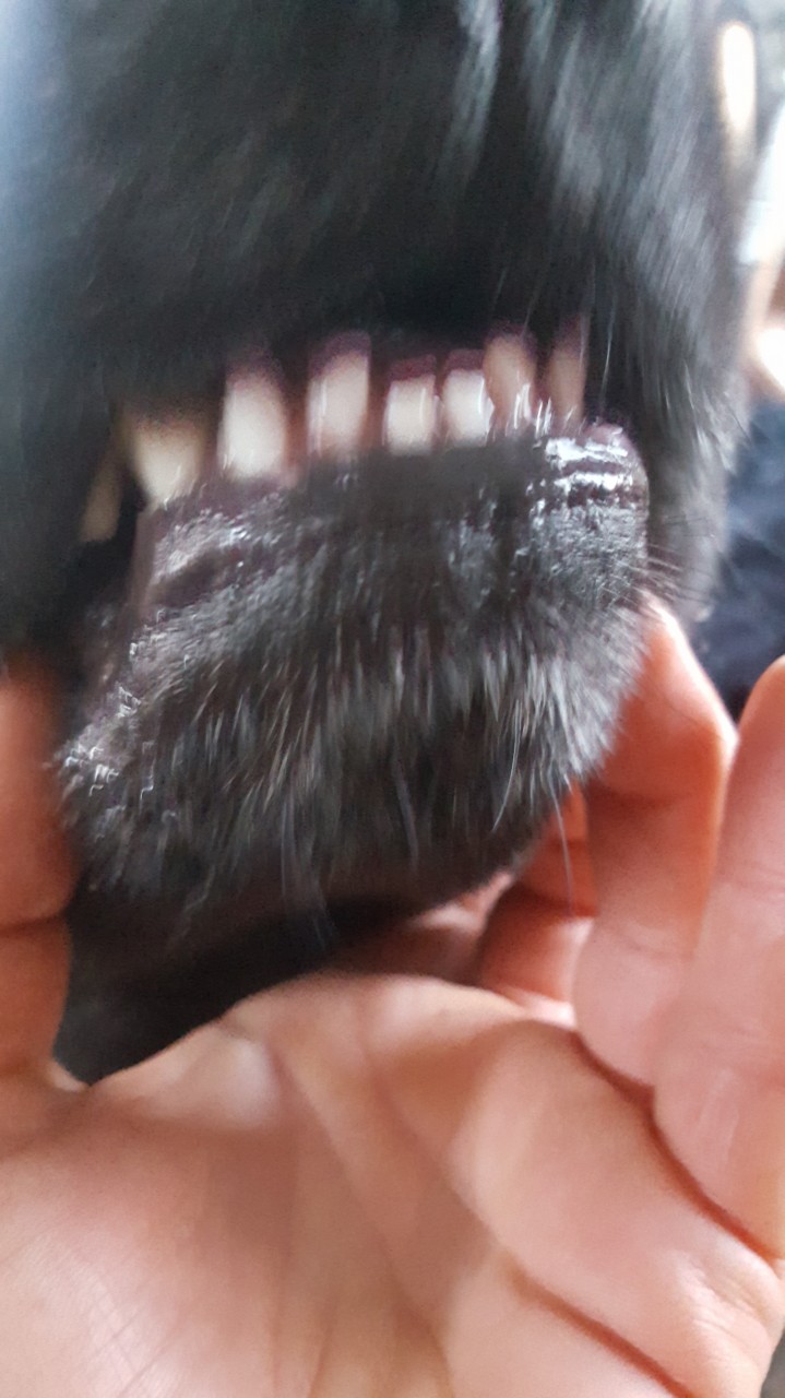 Askja hat ein richtig schickes Gebiss - bis auf die vorderen unteren Schneidezähne. Die beiden mittigen sind fast, wie soll ich's ausdrücken "runtergehobelt".