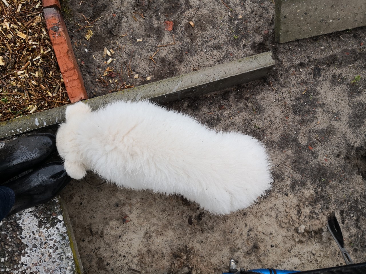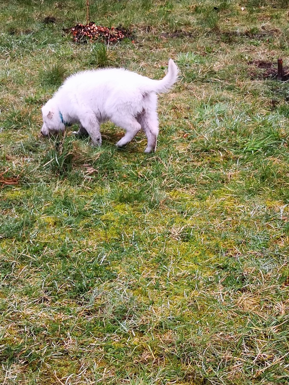 Geht schneller als man denkt. Es nieselt und alles ist nass - nun habe ich hier einen Hund auf Droge, so toll findet sie Wasser. Ich war vorgewarnt, weil 4 von den 9 auch bei Schietwetter unbedingt draussen sein wollten. Natürlich auch Ida.