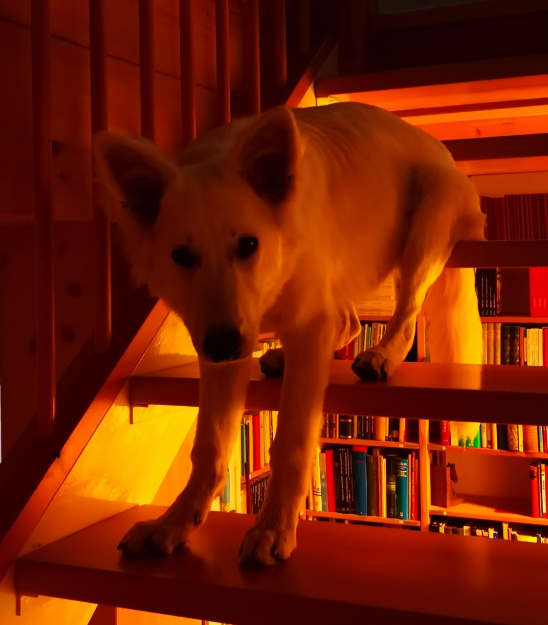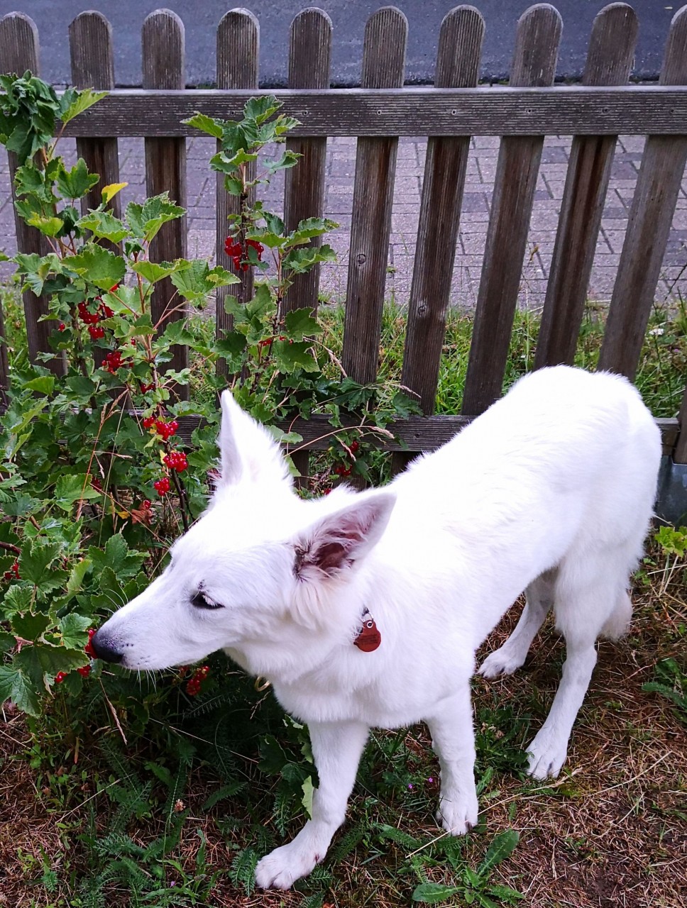Sie weilt übrigens gerade im Leinenknast entspannt auf der Kühldecke (sie hat die Wahl), weil sie nach dem Spazierengehen (mit Laufeinlagen und Freilaufmöglichkeit) eben noch mal bei der Abschluss-Gartenrunde aufdrehen und mit mir spielen wollte. War aber schon eher halbherzig.