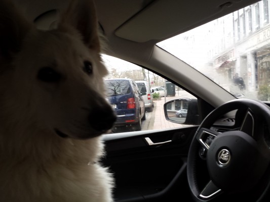 Nach hause zurück hatte er aber ganz doll gejammert und Krawall gemacht. Heute noch lauter als gestern. Zum Glück hatte er immer noch rechtzeitig aufgehört sodass wir ihn zu Hause dann gleich aus der Box hinten herausholen konnten.