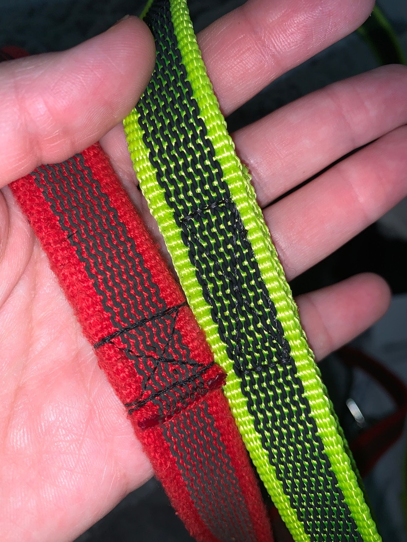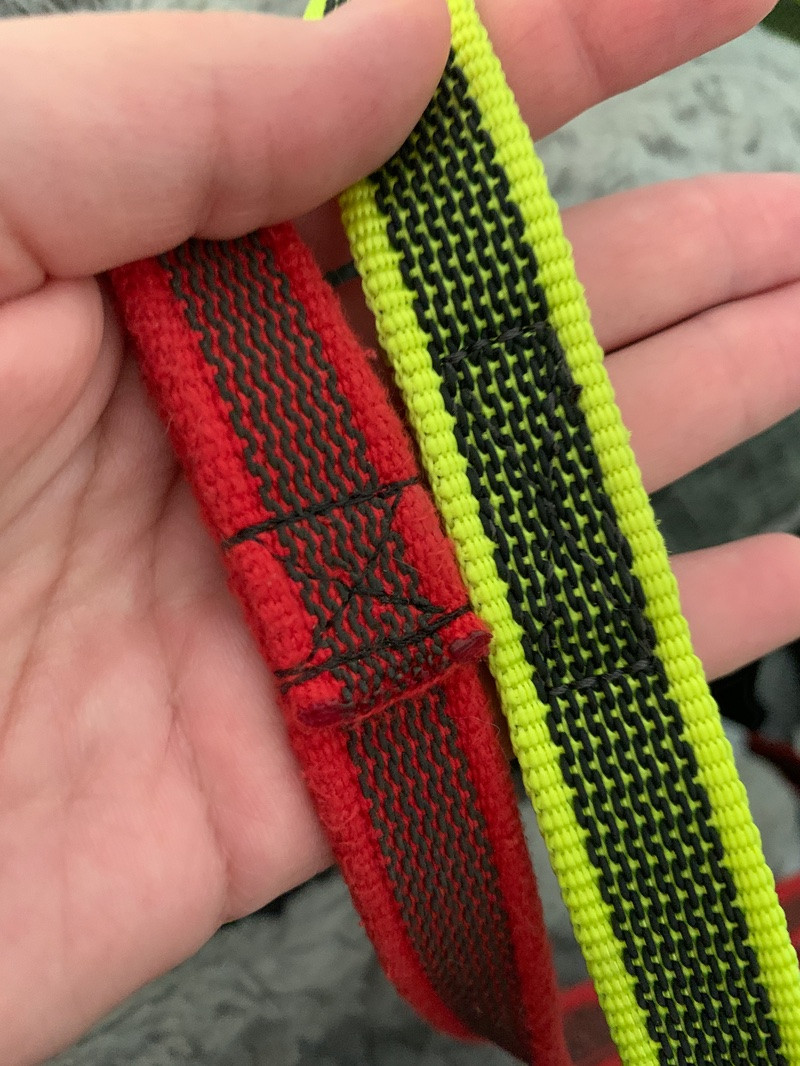 Hier sieht man auch den Unterschied der Naht ganz deutlich, wie ich finde. Das ist bei de K9 einfach nicht so „knapp“ vernäht, ich weiß nicht, wie viel Kilo die halten soll, aber ein 31-32kg Brummi, der dann rein ballert und zieht wie ein irrer Ochs, dem hält sie easy stand.