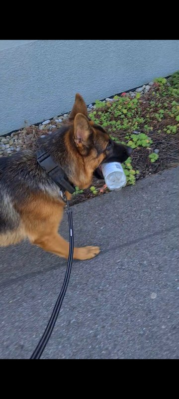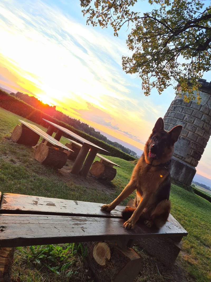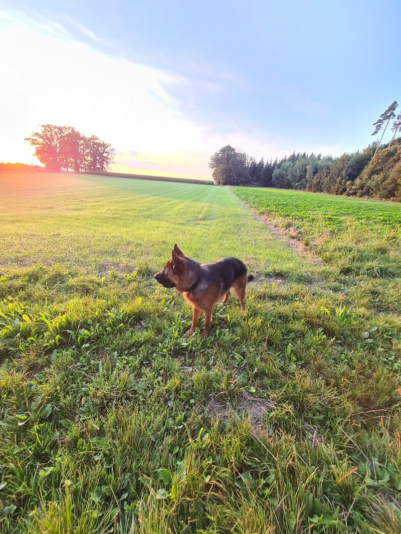 • Update von uns: Bei uns läuft zurzeit alles Rund. Wir waren am Mittwoch wieder im Training und Morgen ist Fährtentraining angesagt. Romeo blüht nun auf dem HuPla so richtig auf. Wir sind gerade dabei die Futterhand langsam abzubauen, er ist wirklich sooo motiviert und war am Mittwoch über 30 Minuten hochkonzentriert bei der Sache. Wir arbeiten nun aktiv unter Ablenkung und am Mittwoch konnte ich ihn ganz eng an einer Person auf dem HuPla vorbeiführen, ohne dass er auch nur 1 mal abgelenkt war. Beim Platz konnte ich mich entfernen und dabei ist eine Person Kreise um ihn spaziert und hat etwas Lärm gemacht, er hat 2/3 mal geguckt war aber ansonsten mit seinen Augen nur bei mir. Beim Fährten verweist er die GS nun bereits zuverlässig und korrekt. Zuhause hat er ab und an Tage wo er etwas Zerstörungswut zeigt wenn ich weg bin, diese Tage werden aber immer weniger. Ich habe nun begonnen regelnässig mein Sportprogramm Draussen zu absolvieren. Während ich Übungen mache muss Romeo Liegen, wenn ich meine kleinen Kreise jogge darf er seinen Ball haben und Spielen. Danach trägt er dann immer die leere Wasserflasche Stolz nach Hause.