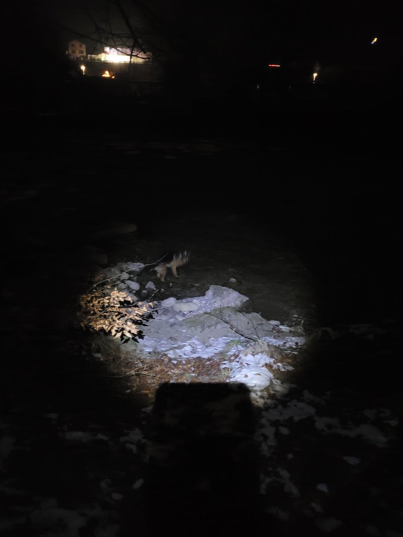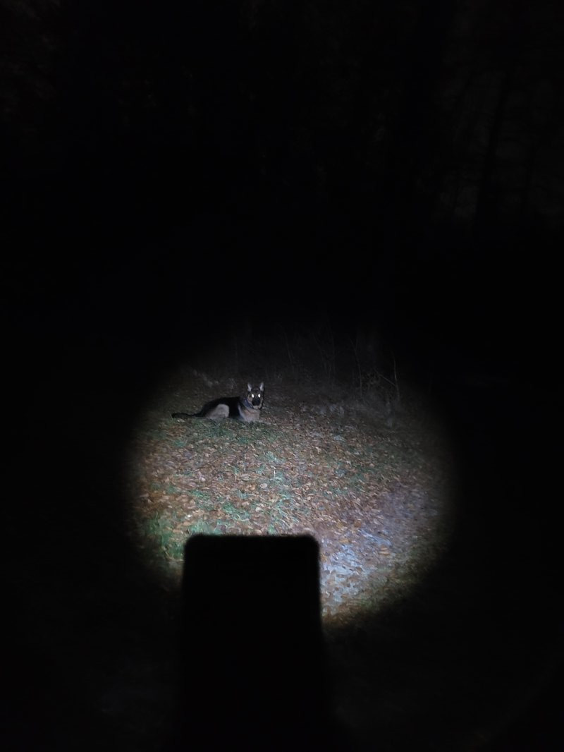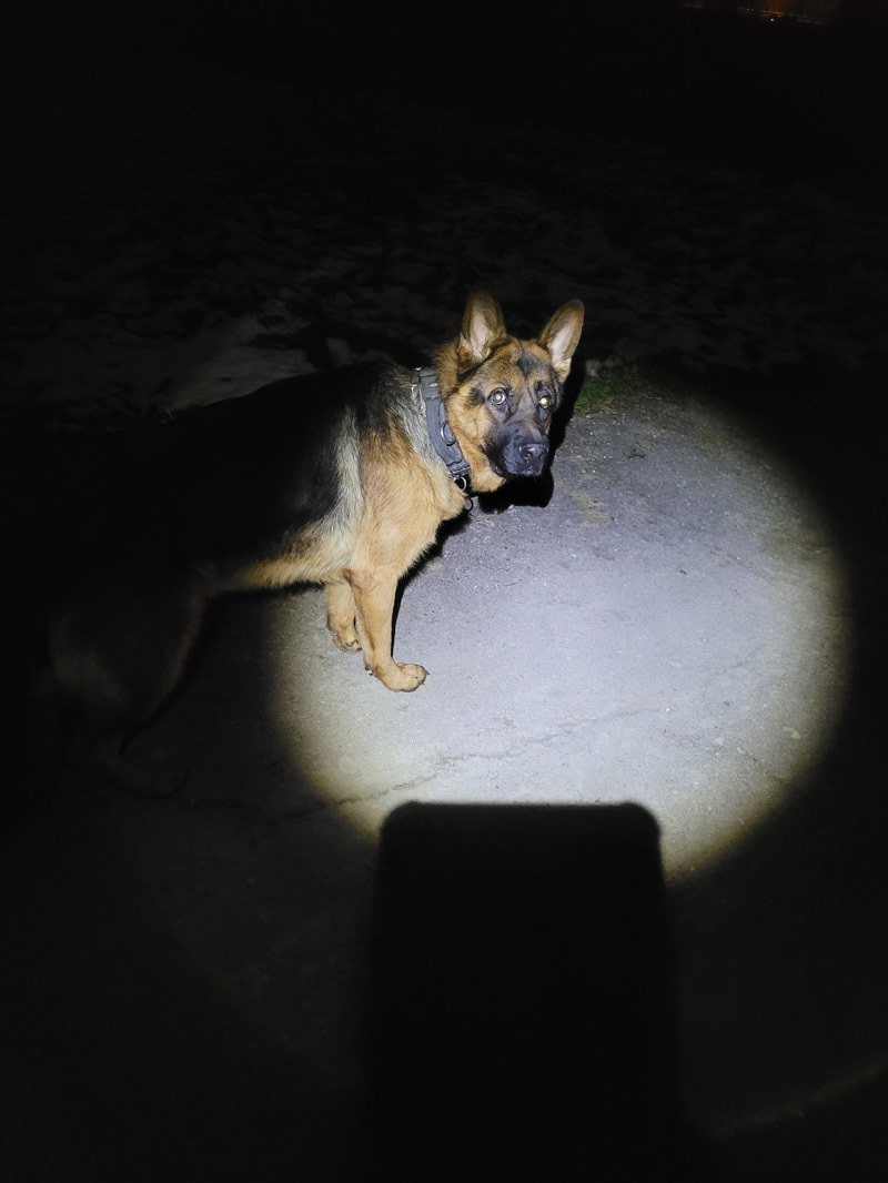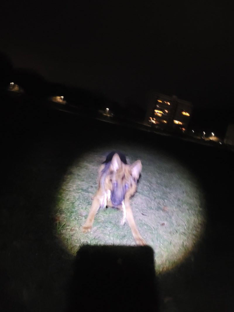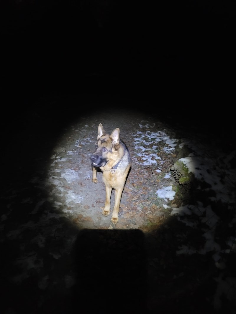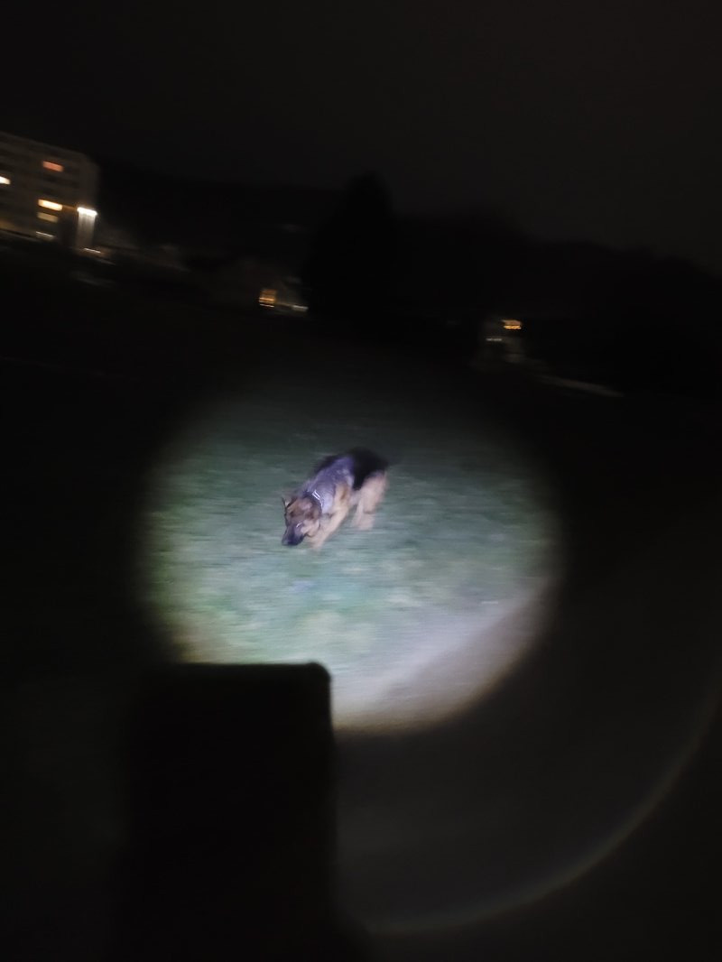 Zuhause starten wir immer ganz ruhig. Romeo durfte heute sein neues Spieli Tragen, bei diesem ist die Schnur zu Dick, da versucht er nicht, diese zu Fressen. Bei der ersten grossen Wiese darf Romeo dann frei laufen, ab da, ist er eigentlich für die fast gesamte Runde frei. Romeo ist wenns Dunkel ist, immer nah bei mir und lässt sich auch super abrufen, wenn wir im Wald mal jemanden antreffen.