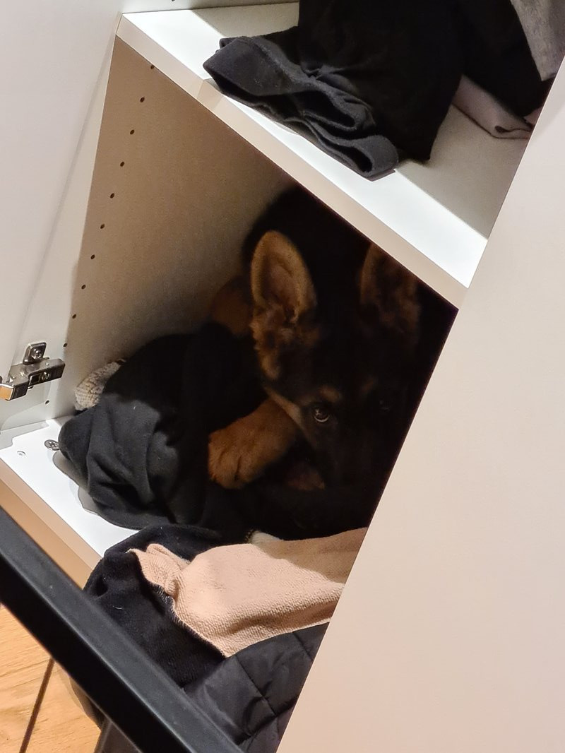 Romeo schläft in meinem Schrank bei den aussortierten Jacken aktuell sehr gerne und darf das auch. Zudem wird viel gekuschelt. -