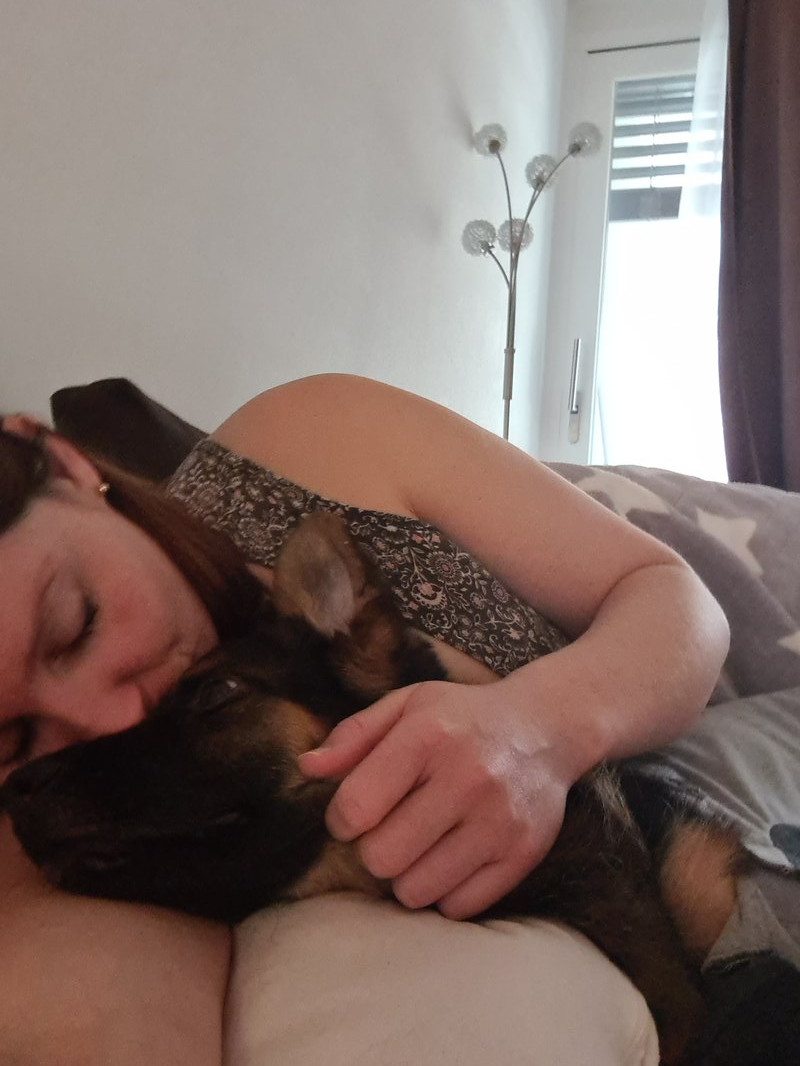 • Der kleine Mann hat sich bereits beruhigt, er hat laaaaange geschlafen, ich war vor ihm wach heute ^^.Wir waren Draussen und er hat sein grosses sowie sein kleines Geschäftchen gemacht und drinnen ist er dann wie immer direkt vor den Napf gestanden ^^ Er wird jetzt erstmal etwas mehr Futter bekommen von mir da er 700 Gramm Gewicht verloren hat. Er bekommt jetzt 5 Mahlzeiten, kleinere Mengen aber dafür gesamthaft mehr. Winseln und Jaulen tut er nicht mehr aktuell. ich denke er war einfach wahnsinnig gestresst da er dort nicht zur Ruhe kommen konnte. Wenn andere Hunde dann noch im selben "Stall" ( so nennen Sie es dort) waren und gebellt oder ebenfalls gejault haben, kann ich mir gut vorstellen wie es Romeo ergangen ist, Stress puur. Jetzt liegt er neben dem Sofa und schläft wieder. Ich bin froh dass er wieder Zuhause ist <3 Schmerzmedikation hat er Gestern Nacht nochmals bekommen als wir Draussen waren zum Pipi machen und ich dann vom Sofa ins Bett wechselte ^^ Er hat gewinselt und den Kopf immer wieder in Richtung Bauch gedreht, war in keiner Position bequem und stand dann einfach da. Nach der Novalgin Gabe war er ca 30 Minuten später tief und fest am Schlafen. Boss Ich kanns durchaus verstehen aber eine Mini Reserve wäre doch ganz nett jeweils, wenn man dann was geben muss hat mans direkt zur Hand.🙈 Sobald er an die Wunde gehen will muss ich ihm die Halskrause anziehen dass stimmt, bisher lässt er diese aber noch in Ruhe😂