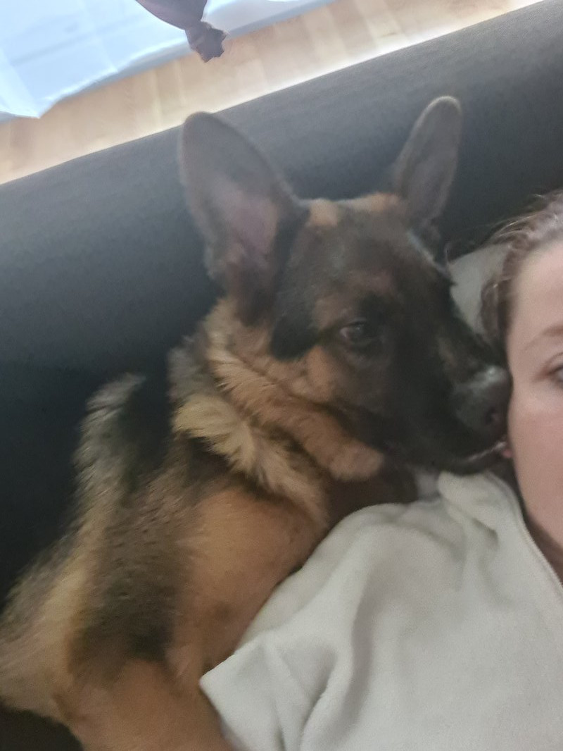 Am Abend hatten wir dann Besuch denn meine Mama hatte Geburtstag. Hab mir schon Sorgen gemacht wies abläuft und alle gebeten Romeo beim reinkommen nicht zu beachten, da er aktuell versucht Besuch anzuspringen, obwohl ich da extrem konsequent bin, da lässt ers dann auch, bis ich ihn für kurze Zeit nicht im Blick hab dann ergreift er seine Chance. Alle kamen also rein und haben so getan als wäre er nicht da. Romeo hat nicht versucht hochzuspringen und sich sehr schnell beruhigt. Während des Essens lag er unter dem Tisch und hat gepennt, genoss die Fusskraulereien🤣. Was war ich stolz auf ihn <3 Der Abend verlief sehr ruhig und Romeo zog sich dann zurück auf seine Decke, schlief dort weiter. Was momentan sehr extrem ist ist sein Bedürfnis nach Nähe. Er will ständig bei mir liegen und sucht wirklich immer wieder Körperkontakt. Am liebsten kuschelt er den ganzen NM mit mir auf dem Sofa, da fühlt er sich dann wie im 7ten Himmel.