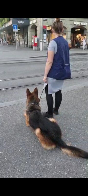 Uns ist wichtig dass wir Romeo überall hin mitnehmen können, nächsten Sommer wollen wir nach Holland in ein Strandhäuschen, da kommt Romeo natürlich mit. Ich selber war bei den Stadttrainings immer immens gestresst, wenn mein Partner dabei war aber kaum noch, weshalb er mich fast immer begleitet hat. Jetzt, kann ich auch alleine gehen ohne gestresst zu sein. Training zahlt sich aus😊Wir haben dafür einiges nachzuholen auf dem HuPla, wir sind gerade dabei die Futterhand abzubauen und die Kehrtwende sowie den Vorsitz zusammen zu bauen, beide Übungen bestehen aus jeweils 2 Teilen. Unser Ziel ist vor allem die BH VT ( Begleithundeprüfung mit Verkehrsteil). Diese wollen wir nächstes Jahr bestehen. Anbei ein paar Impressionen😊