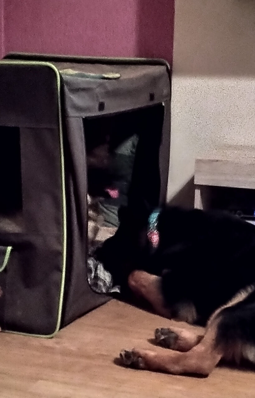 Kau Zeug hab ich ansonsten so Hirschgeweih da, aber da nagt er nur mal ab und zu ein bisschen dran und sucht sich dann was anderes.