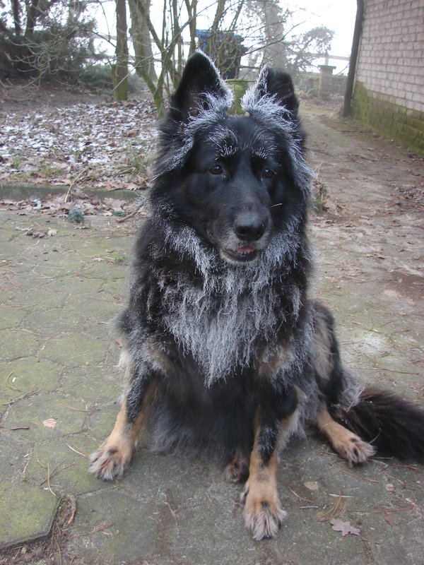 Die Feuchtigkeit des Nebels hatte sich auf die Haarspitzen der Hunde niedergeschlagen und war sofort gefroren ... ich hatte bei Benes Anblick gedacht, sie wäre zum Husky mutiert ![]()