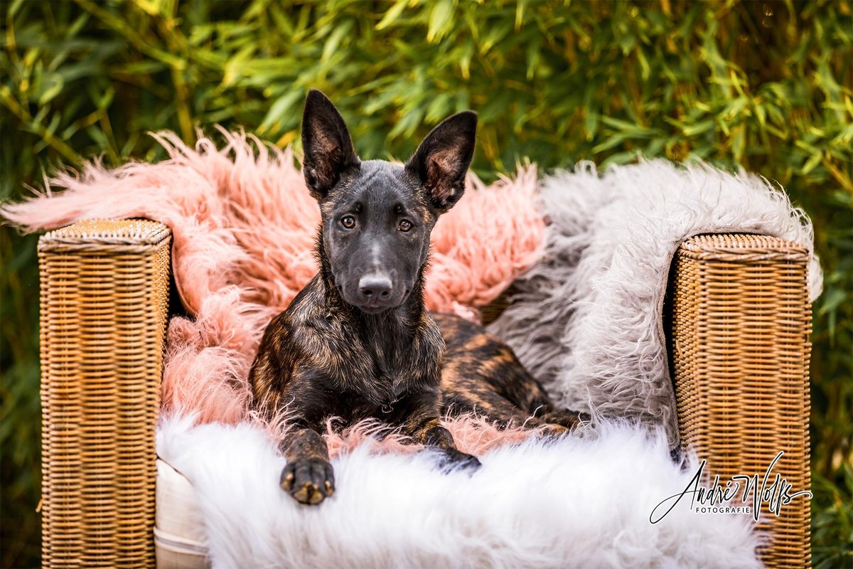 Das Zeug dazu hat sie aufjedenfall. Im Gegensatz zu unserem "Prinz Hasenherz-Archie" scheint sie das Wort Angst nicht zu kennen. Hel (mit langem E) hat ihrem Namen von der germanischen Göttin, die sich den guten gegenüber offen und herzlich zeigt. Den schlechten gegenüber ist sie unerbittlich und grausam. Wir mussten schnell feststellen, einen besseren Namen als diesen könnte sie nicht haben. Wir sind zuversichtlich, dass sie sich super entwickeln wird. Bei ihr handelt es sich um einen Herder-/Mali-Mix.