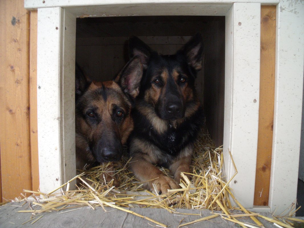 • Wir hatten zwar schon von Anfang an (vor 25 Jahren) einen schönen Zwinger mit Dach und mit super isolierter Hundehütte. Der Zwinger ist auch nie zugesperrt.