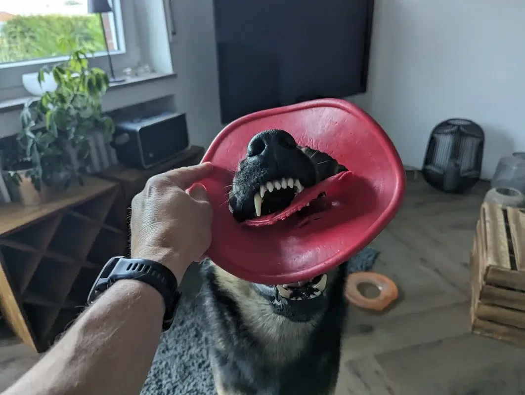 eine kurze Rückmeldung was das Frisbee betrifft, wir haben es ja seit dem 09.03.21 im Gebrauch. Wir sind nach wie vor sehr zufrieden mit dem Teil ! Keine Bissstellen oder gar Löcher, trotz Regen ist Es Formstabil geblieben. Auch das eine oder andere " Gezerre " ,wenn Ghost mal nicht gleich AUS gibt schadet dem Teil nicht ! Absolut keine Splitterwirkung da nicht aus Kunststoff gefertigt, daher auch für den Hund im Maul ungefährlich ! Fliegen tut es meiner Meinung nach sehr gut :thumbup: .