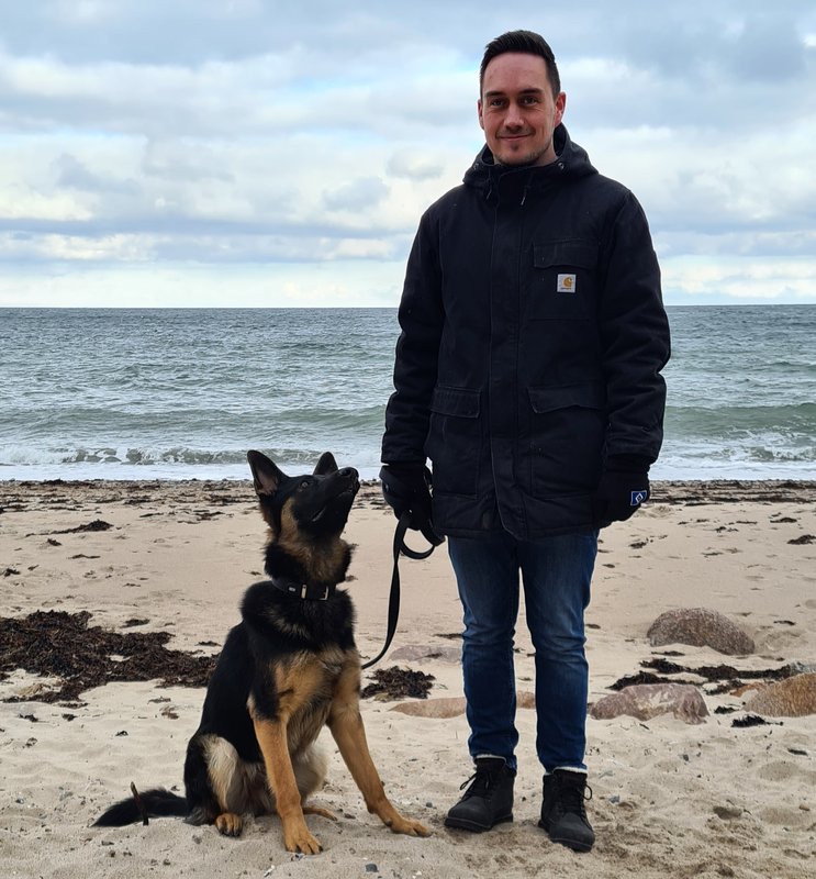 Ich bin Leo, bin am 01.01.2020 im Kreis Plön geboren und wohne mit meinem Herrchen Kevin ( gemeinsam mit mir auf dem Bild ) und dem Rest der Familie in einem Haus mit Garten in einem Dorf an der A1.