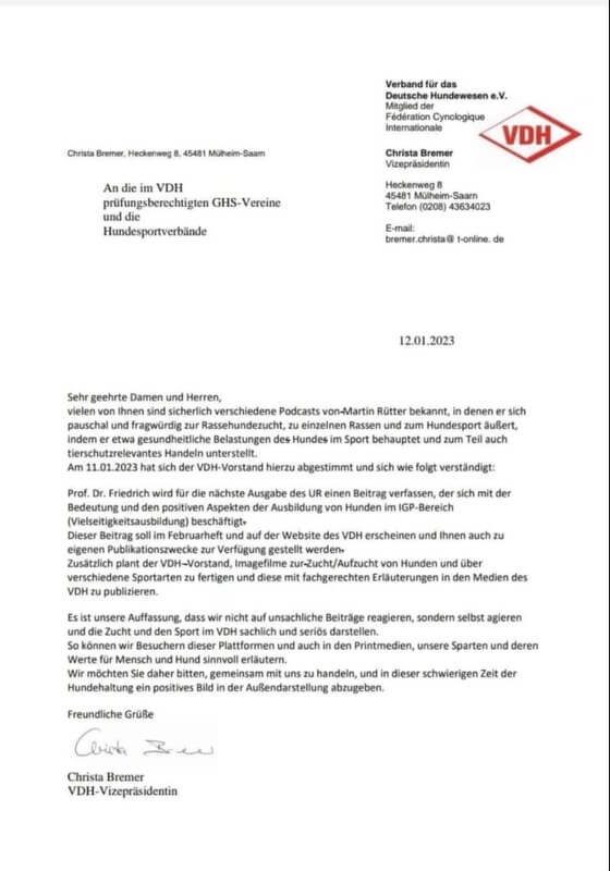 • ha, das ist doch super, dass der vdh reagiert und auch mr dabei erwähnt.