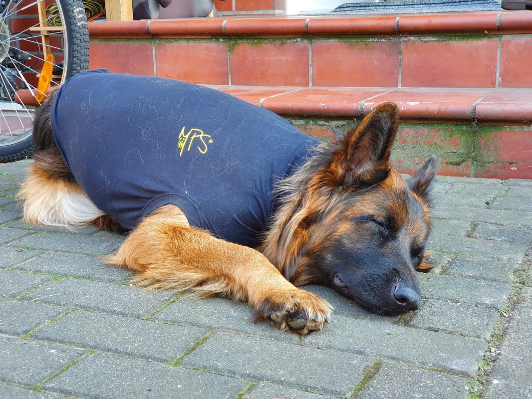• Ich war bei unserer Nelli sehr überrascht, wie sie die OP (Entfernung Gebärmutter und Milchleiste) so gut weggesteckt hatte. Sie schlief nachdem sie wieder zuhause war (nachmittags) bis zum nächsten morgen erst einmal und ich hab sie auch gelassen. Die nächsten Tage dann nur freiwillig aufstehen, ein bisschen fressen und raus in den Garten, das war es dann schon. Aber sie winselte nicht und schlief einfach sehr viel. Sie leckte kein bisschen an der sehr langen OP-Narbe, aber es war alles zuhause (Kragen usw.), dass wir für den Fall der Fälle reagieren hätten können. Sie war aber von sich aus sehr vernünftig, schonte sich und nach ca. 3 Wochen war sie wieder total fit. Allerdings wurden die selbstauflösenden Fäden, weil die sie sehr störten (sie legte sich plötzlich nicht mehr so gerne hin) nach 8 - 10 Tagen doch entfernt und dann ging es konstant bergauf.