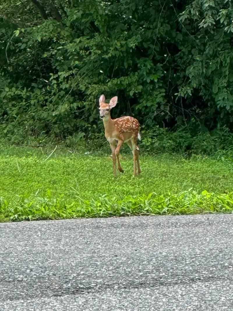 • Was für eine Woche, Tony hat jetzt eine(n) Rehkitzfreund(in)? Die beiden sind ganz fasziniert voneinander und starren sich sehnsüchtig an. Das war jetzt der dritte Besuch und jedes Mal kommt das Rehkitz näher an den Zaun.