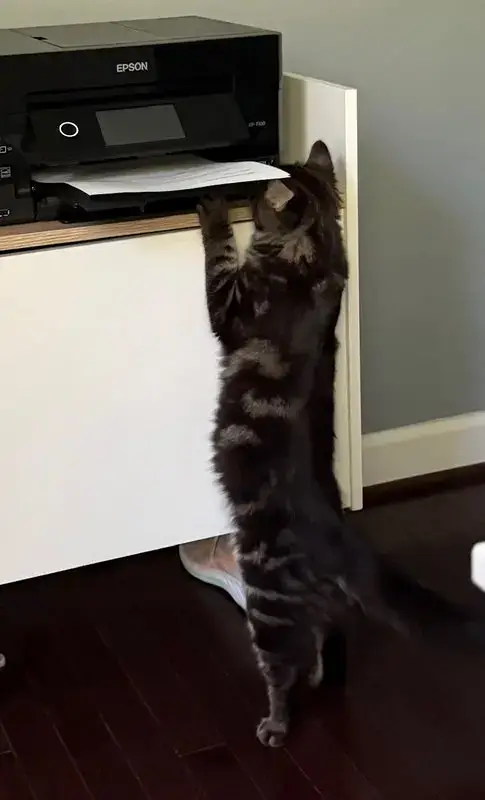 Nachdem Luca gegessen hat, hilft er mir, wie man sieht gerne im Büro. Drucker hat seltsam geklungen, aber Luca war sofort da um sich das mal genau anzusehen.