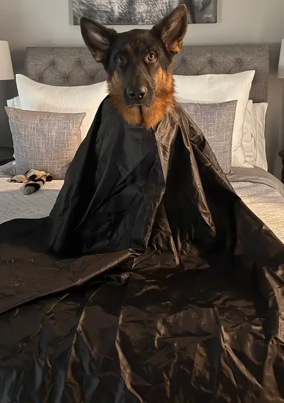 Ich, als gute Mutter, habe diese Zeit genutzt um Tony zu belästigen und habe ihm einen Frisörumhang umgelegt und dann fotografiert! Ok, abgesehen von dem enttäuschten Blick, der eindeutig sagt, ich wünschte mir von der anderen Familie adoptiert worden zu sein, hat es sich doch gelohnt. ^^ Sorry, Tony, ich werde mich bessern.