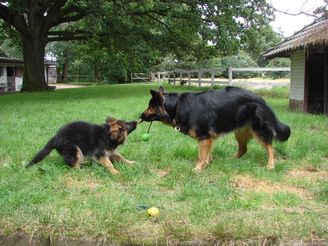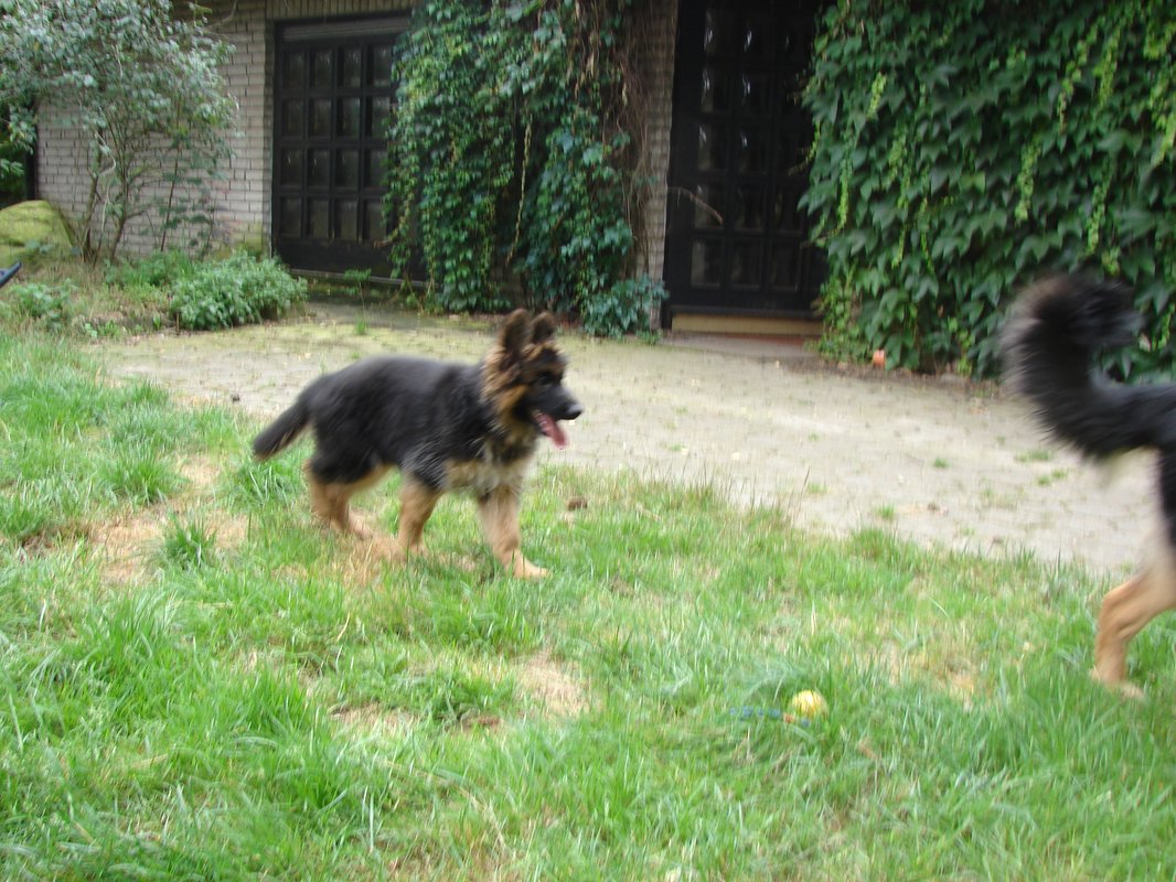 Ich schicke voraus, dass sie wirklich jede Woche exakt ein Kilo zunimmt und somit heute genau 10 kg wog. Chia war mit 13 Wochen sogar ein Kilo schwerer und ist trotzdem eher ein schlankere und kleinere Schäferhündin geblieben, die mit 19 Monaten nun 60/61 cm Schulterhöhe und ca. 33 kg erreicht hat.