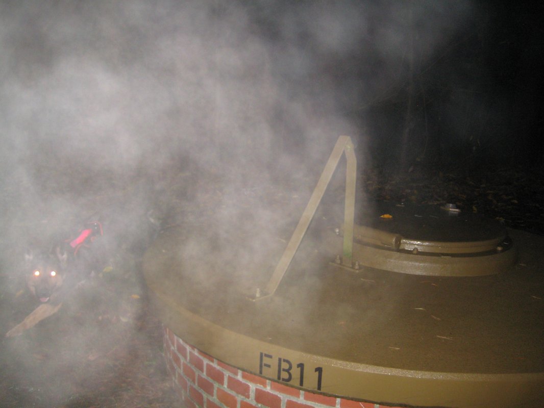 Mein Versuch, heute Früh mal das Brunnenspiel zu fotoknipsen war eher ein Reinfall. Was man sieht, sond meine Atemwolken vor der Linse und in all dem Nebel ein bisschen Chia beim umrunden: