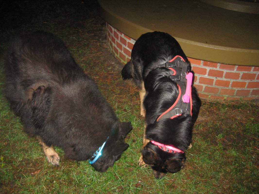 Ich schaue mal, ob ich doch irgendwo das Teil von Karlie bekomme und hoffe, dass das länger hält.Viel Geleucht sieht man aber auch von den Halsbändern nicht - die sind tatsächlich an. Aber ich werde heute Nacht mal beude Leuchties an den Strom hängen ...