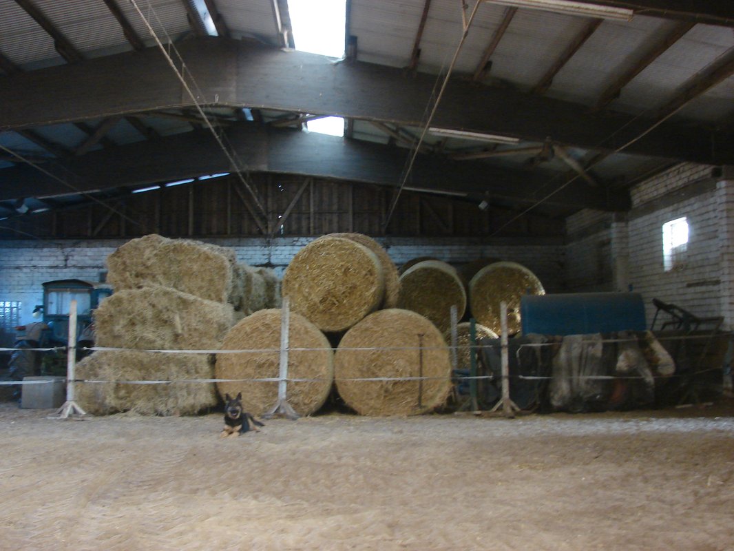 Wir hatten zwar auch schon mal den Jahresvorrat in der Reithalle gelagert, aber dann kann ich bestenfalls noch einen Mini-Longierzirkel nutzen und nachdem uns beide Landwirte anboten, für uns Heu und Stroh mitzumachen und das auch zu lagern und alle drei bis vier Monate zu liefern, ist das ideal.